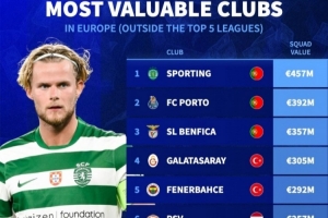欧洲非五大联赛球队身价排名: