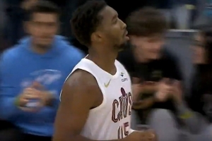 GIF-米切尔三分+妙传亨特上空篮
