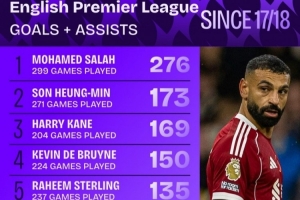 体育资讯11月19日讯 数据机构squakwa统计了17-18赛季以来的英超直接参与进球榜,萨拉赫断崖领跑。