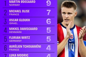 1.马丁·厄德高(挪威),9次