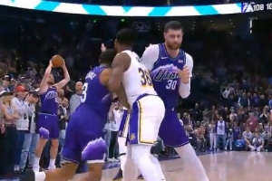 体育资讯11月25日讯 昨日NBA常规赛,湖人客场108-106险胜爵士,NBA官方发布了本场比赛的裁判报告,本场比赛最后两分钟共出现2次漏判,两次均不利于爵士,其中斯玛特最后一回合防守基昂特·乔治时犯规,裁判漏吹。