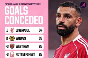 体育资讯11月29日讯 Opta统计了本赛季英超球队在所有赛事中的丢球数量,并列出榜单,利物浦丢34球最多,狼队丢33球次席。