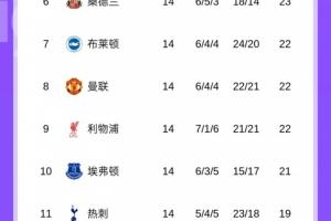 曼联前14轮排名: