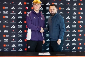 据曼彻斯特晚报消息,哈迪与曼联签署的是奖学金合同,并在卡灵顿训练基地与青训运营主管史蒂夫·海厄姆合影。