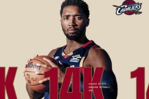 上半场米切尔拿到8分,生涯总得分突破14000。
