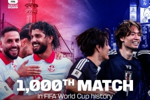 国际足联官方社媒晒出海报,确认此役将是世界杯历史上第1000场比赛。