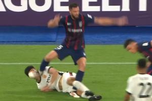 体育资讯12月09日讯 亚冠精英联赛第6轮,海港客战柔佛,比赛第16分钟,李圣龙倒地后被柔佛球员安东尼奥·格劳德尔踢到面部,随后鼻梁流血不止,但主裁判没有任何表示,VAR也没有介入。