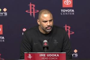 体育资讯12月12日讯 NBA常规赛,火箭115-113击败快船,赛后,火箭主教练乌度卡出席新闻发布会,接受记者的采访。
