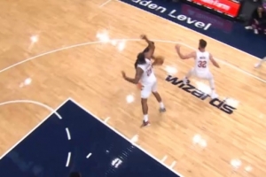 小摩擦!贾勒特·阿伦和迪亚巴特拼抢时发生口角 前者被吹技犯