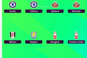后卫:古斯托(切尔西)、福法纳(切尔西)、巴拉德(桑德兰)、雷尼尔多(桑德兰)