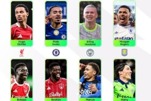 体育资讯12月16日讯 英超官方公布了本轮最佳球员候选名单,其中埃基蒂克、萨卡、哈兰德等球员在列,具体如下: