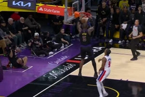 詹姆斯生日夜半场手感火热砍15分 湖人落后活塞5分进入下半场