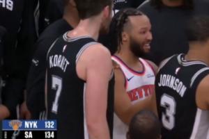 体育资讯01月01日讯 在今日尼克斯不敌马刺的最后时刻,尼克斯落后5分,布伦森投进了一个超高难度的压哨三分球,最终憾负2分。