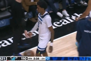 就差一点!莫兰特运球差点失误 顺势高难度后仰绝杀三分不中