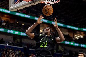 亚历山大突破防线几乎空篮 维金斯后程起跳直接将球扇飞