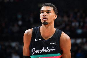 GIF-文班单打戈贝尔转身后仰命中