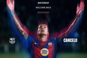 31岁的坎塞洛2024年夏窗以2500万欧元价格从曼城加盟利雅得新月,此前他曾于2023年租借效力过巴萨一年。