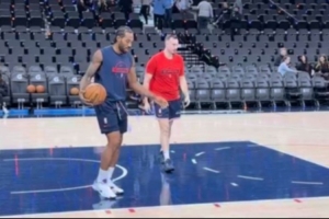 意外状况!布伦森胯下运球时自己扭到右脚 目前已经回到更衣室