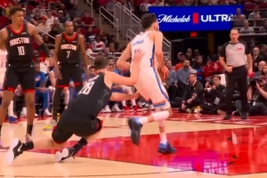 没默契!申京和谢泼德传跑没想到一起 火箭失误白送出球权