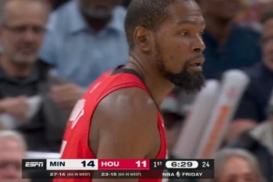 亏死了!杜兰特一路扯着戈贝尔球衣最后终于帽掉 芬奇抱怨还吃一T