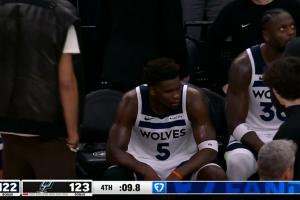 小摩擦!斯玛特突破上篮得手&起身时压到里斯 随后回防拼抢犯规