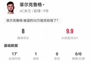 菲尔克鲁格社媒纪念米兰处子球:无比开心和自豪,我的新家!