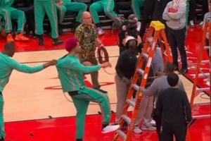 差点摔倒!卡斯尔快攻大风车暴扣表演 奥科吉上来碰了一下犯规