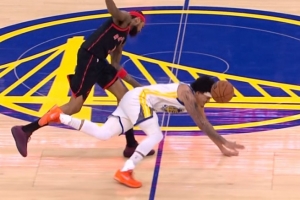 勇士第三节狂轰44分!库明加压哨上篮追至14分 主场球迷起立鼓掌