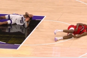 GIF-考德威尔和莫格博卡位对抗倒地,随后拉扯莫格博腿部也倒地,被吹一级恶意