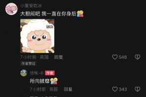 徐彬女友小董评论“大胆闯吧,我一直在你身后”,徐彬回复“所向披靡”,两人IP均显示在英国。