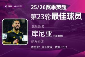 2025-2026赛季英超火热进行中,体育资讯和咪咕体育联合发起每轮英超最佳球员评选活动!第23轮评选结果已经出炉,曼联前锋库尼亚当选!