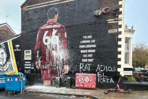 阿诺德利物浦壁画今晨惨遭污损,被涂鸦大字:“再见吧,老鼠”