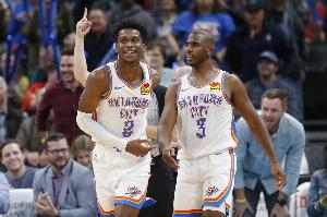 体育资讯5月29日讯 NBA季后赛西决G5,雷霆半场65-32领先森林狼。