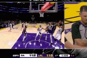尚帕尼三分不中篮板混战出界&吹给马刺球权 湖人挑战成功拿回球权