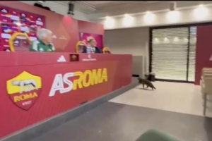 一只猫咪闯入加斯佩里尼的新闻发布会,打断罗马主帅发言