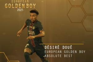 实至名归!官方:20岁杜埃荣膺2025年金童奖,16球16助1年5冠