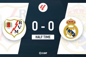 半场-皇马暂0-0巴列卡诺 维尼修斯+劳尔-阿森西奥失良机