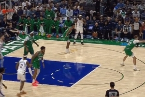 四人定在地上!亚历山大突破吸引防守 分球哈滕后者暴扣得手
