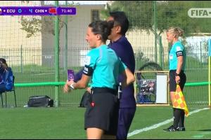 挑战VAR失败!中国女足U17挑战对手禁区手球,主裁回看后驳回