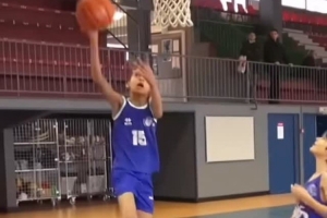 萌萌哒!文班亚马小时候打球的画面 小时候四肢就修长无比